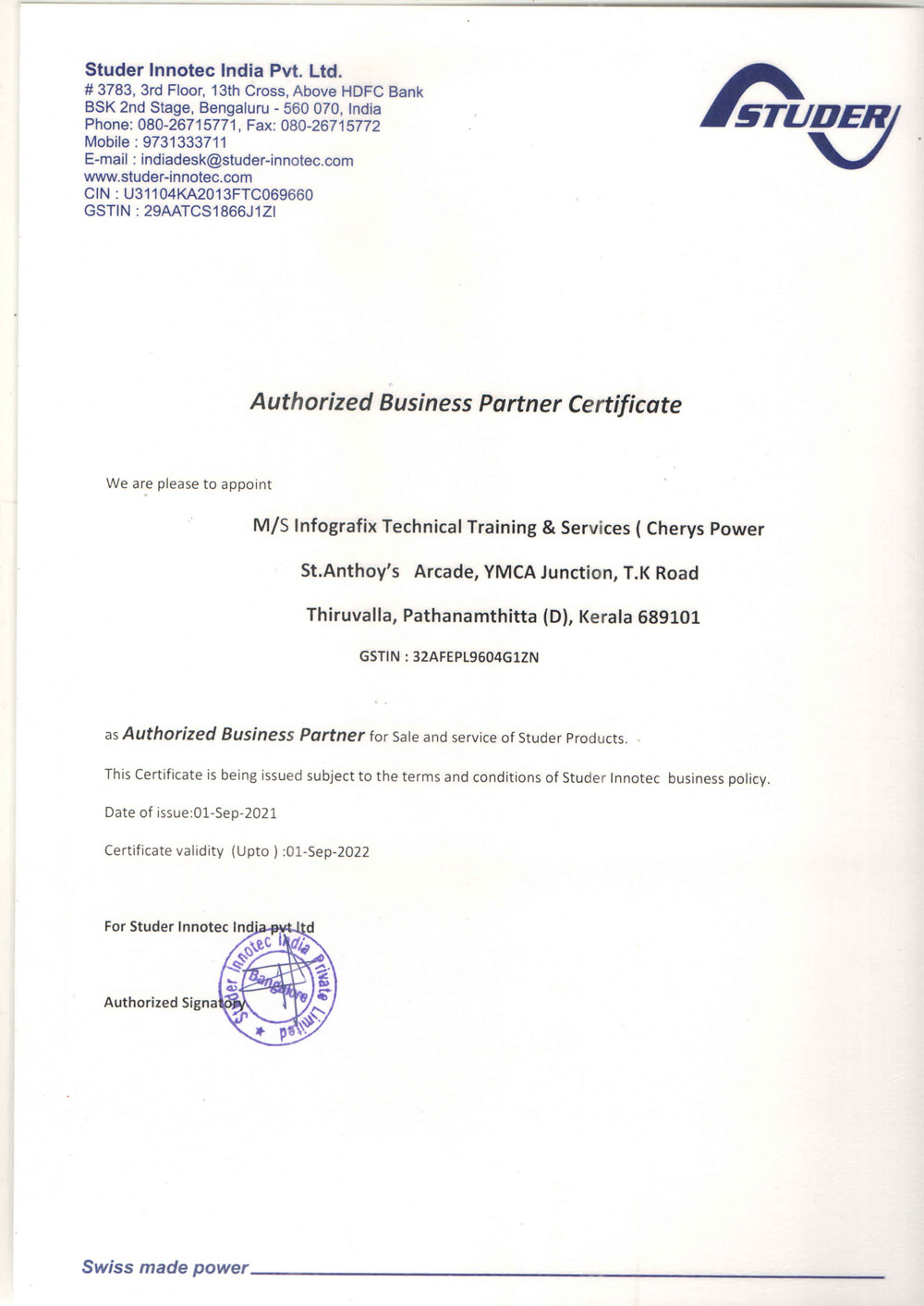 With Studer Innotech India Pvt. Ltd.